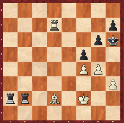 While White is one move from disaster, it’s White’s move. Therefore, 1.g5+ Kh5 2.Rxh7#